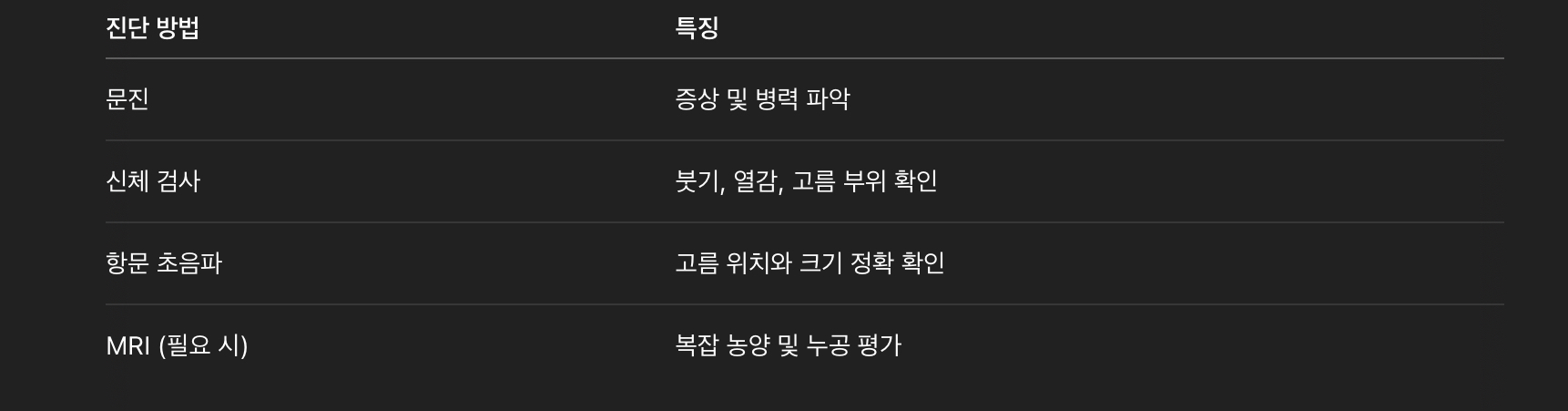 Tip: 정확한 진단을 위해서는 의료진의 진찰이 반드시 필요합니다.